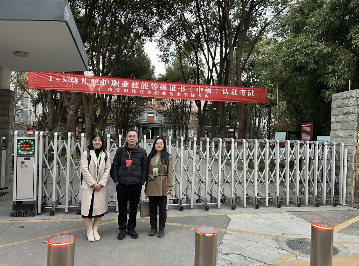 11月25日,公司1+X幼儿照护职业技能等级考试(中级)考评员贺舟颖、金月辉,督导员胡中方一行三人赴南京财经职业技术公司(莫愁路校区)进行考评和督导工作。并对该校1+X证书考试情况进行了调研。为下月公司即将开展的1+X幼儿照护职业技能等级考试(中级)做了相关考察工作。