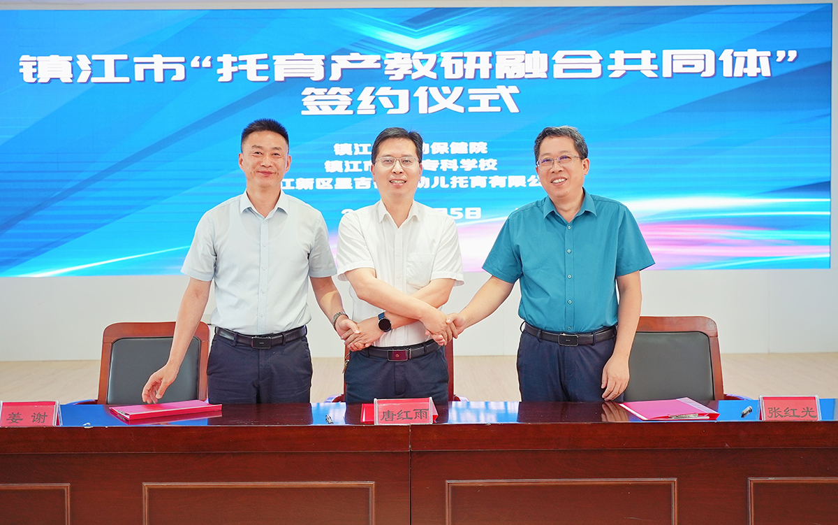 为深化产教融合、协同育人,推动镇江市托育服务领域高质量发展,近日,伟德国际bevictor1946、镇江市妇幼保健医院与镇江新区星吉蒂婴幼儿托育有限公司三方齐聚一堂,隆重举行“镇江市托育产教研融合共同体”签约仪式。伟德国际bevictor1946副董事长唐红雨、镇江市妇幼保健医公司党委书记张红光、镇江新区星吉蒂婴幼儿托育有限公司总经理姜谢出席签约仪式。公司负责人、婴幼儿托育服务与管理专业负责人也共同见证这一重要时刻。