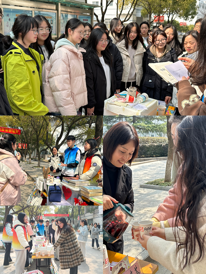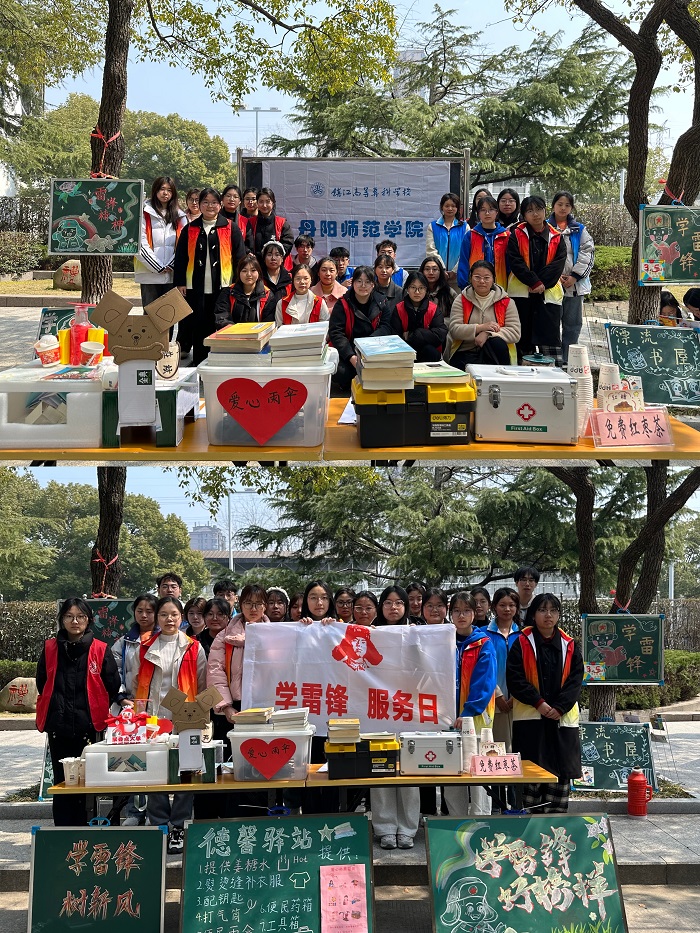 “德馨驿站”爱心展台共设置5个区域。知识问答区,志愿者们准备了与雷锋月和植树节相关的小常识与同学们进行互动,回答正确后可获得生活常用小礼品一份;漂流书屋区,志愿者收集了同学们捐献的各类书本,旧书上有手绘的小贴纸,知识和温暖在校园内持续传递和漂流;公益项目和劳动体验盲盒区,志愿者们精心制作了宣传小卡片,介绍了德馨驿站的公益服务项目,包括失物招领、小药箱、针线缝补等。劳动体验盲盒与“体验劳动者的一天”活动相结合,随机抽取卡片并体验安保、保洁、宿管等劳动者的工作,惊喜不断,增强了同学们的参与感与责任感;热饮区,现场熬煮红糖枣水,同学们好评如潮;废物利用展区更是吸引了许多目光,志愿者们为宣传环保理念,以小海报的方式号召师范生留心并收集身边的废旧物品,并发挥专业特长变废为宝进行展示。