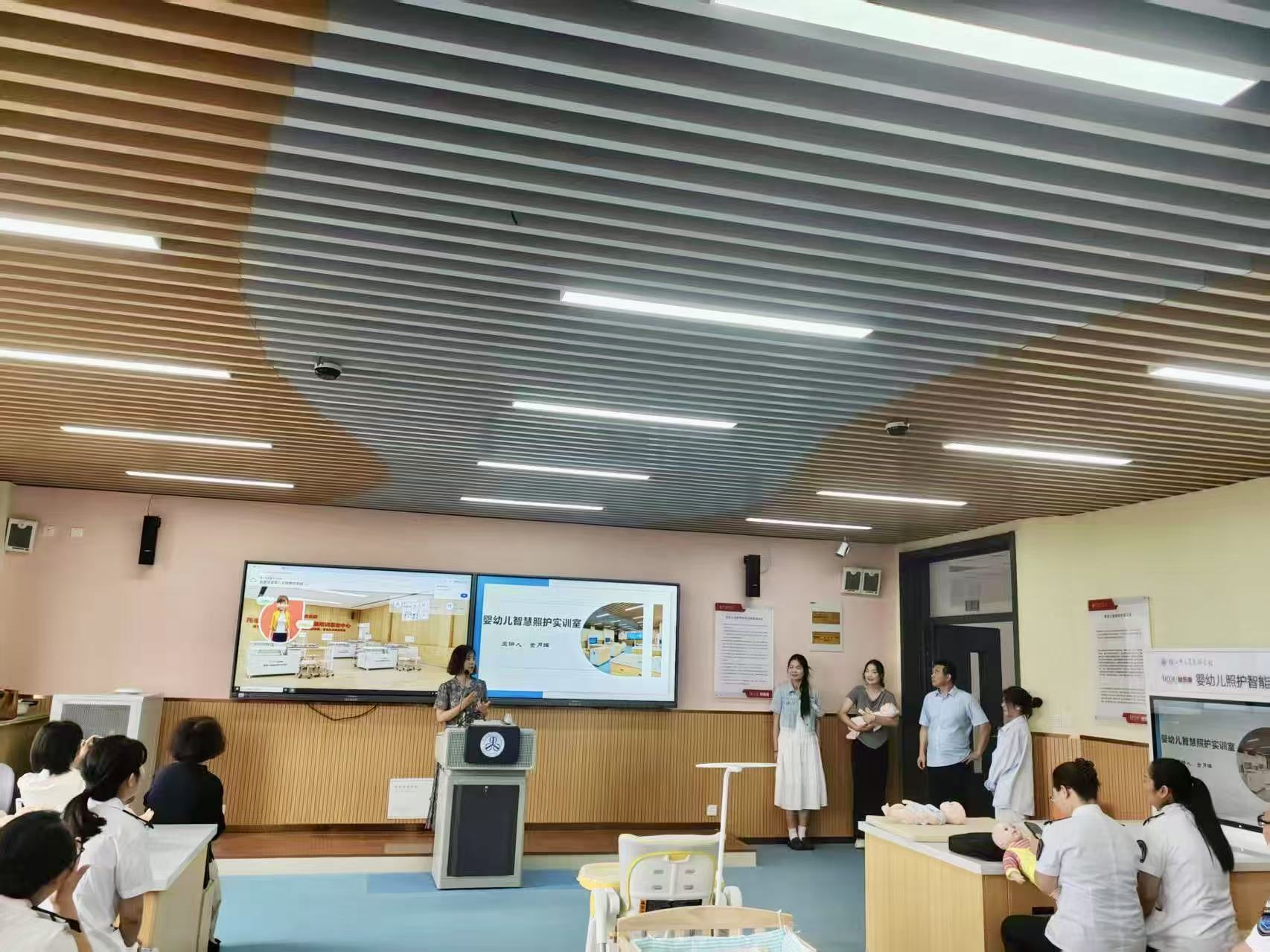 婴幼儿智慧照护实训室融合了智能传感、信息化管理等前沿技术,打造出集婴幼儿生活照料、健康监测、早期发展指导等功能于一体的智慧化教学环境。在这里,员工不仅能够学习的婴幼儿照护技能,还能通过智能设备记录技能操作指标,运用大数据分析,为员工提供个性化的学习方案,极大提升了托育人才培养的现代化水平。